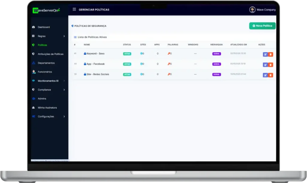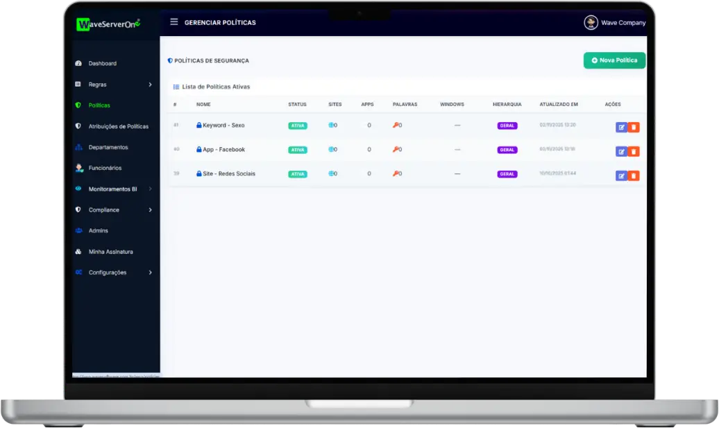 Bloqueie sites, apps e USBs com políticas simples, claras e eficientes.