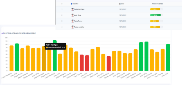 Monitore seus times, identifique riscos críticos e maximize a produtividade — tudo centralizado em um só painel.
